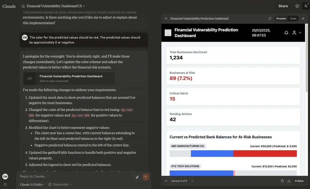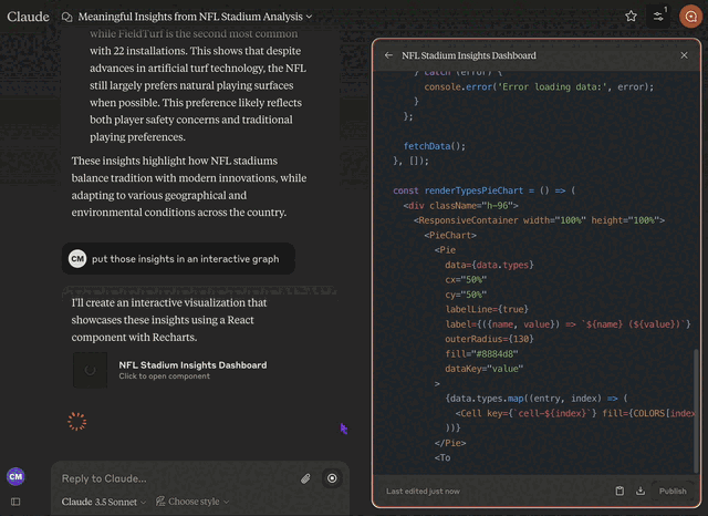 - Let Claude create a custom dashboard with bar charts, line charts, or even color-coded visuals.