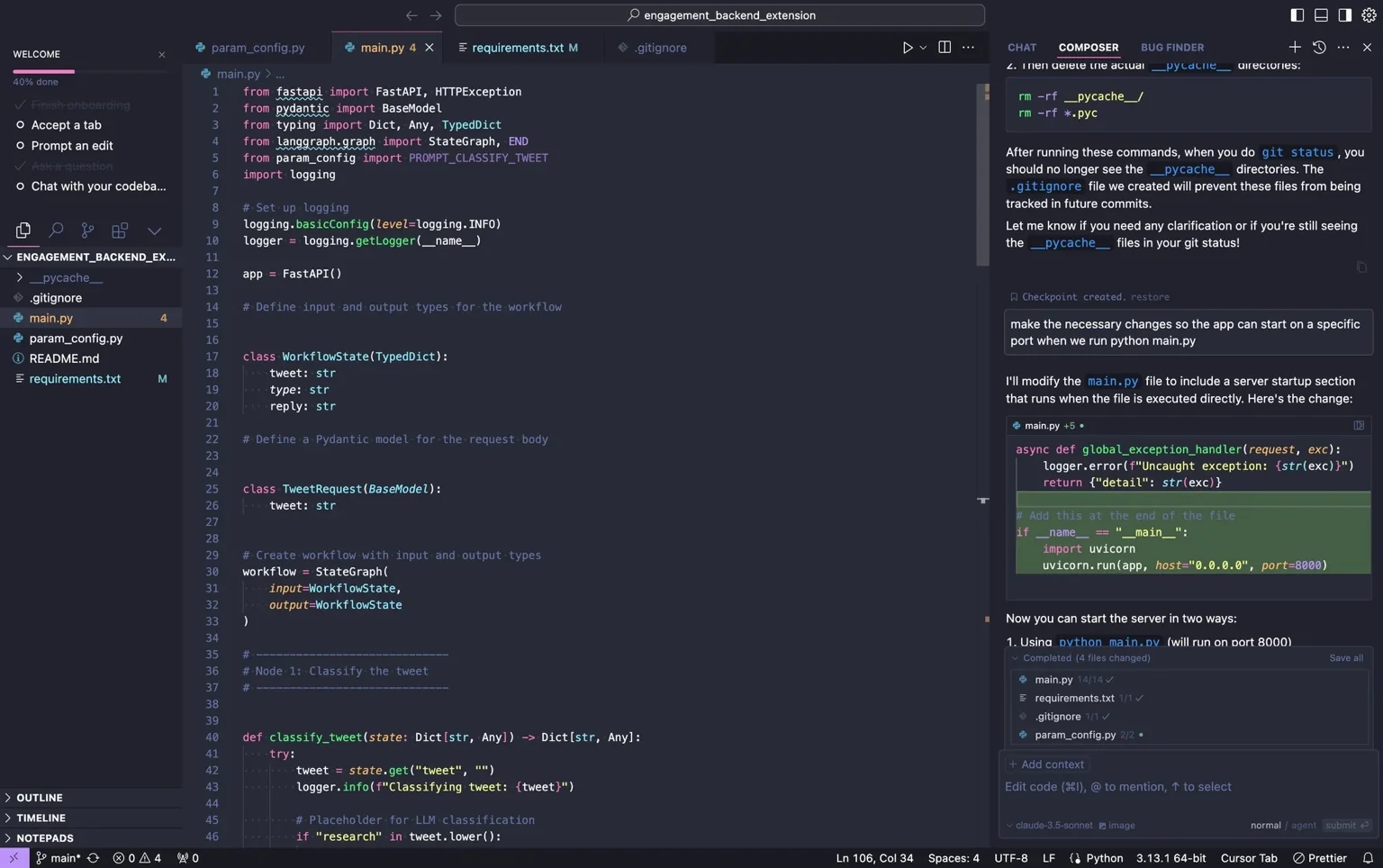 So, I copied the errors I got when trying to run the app, pasted them back into Cursor, and asked it to fix things.