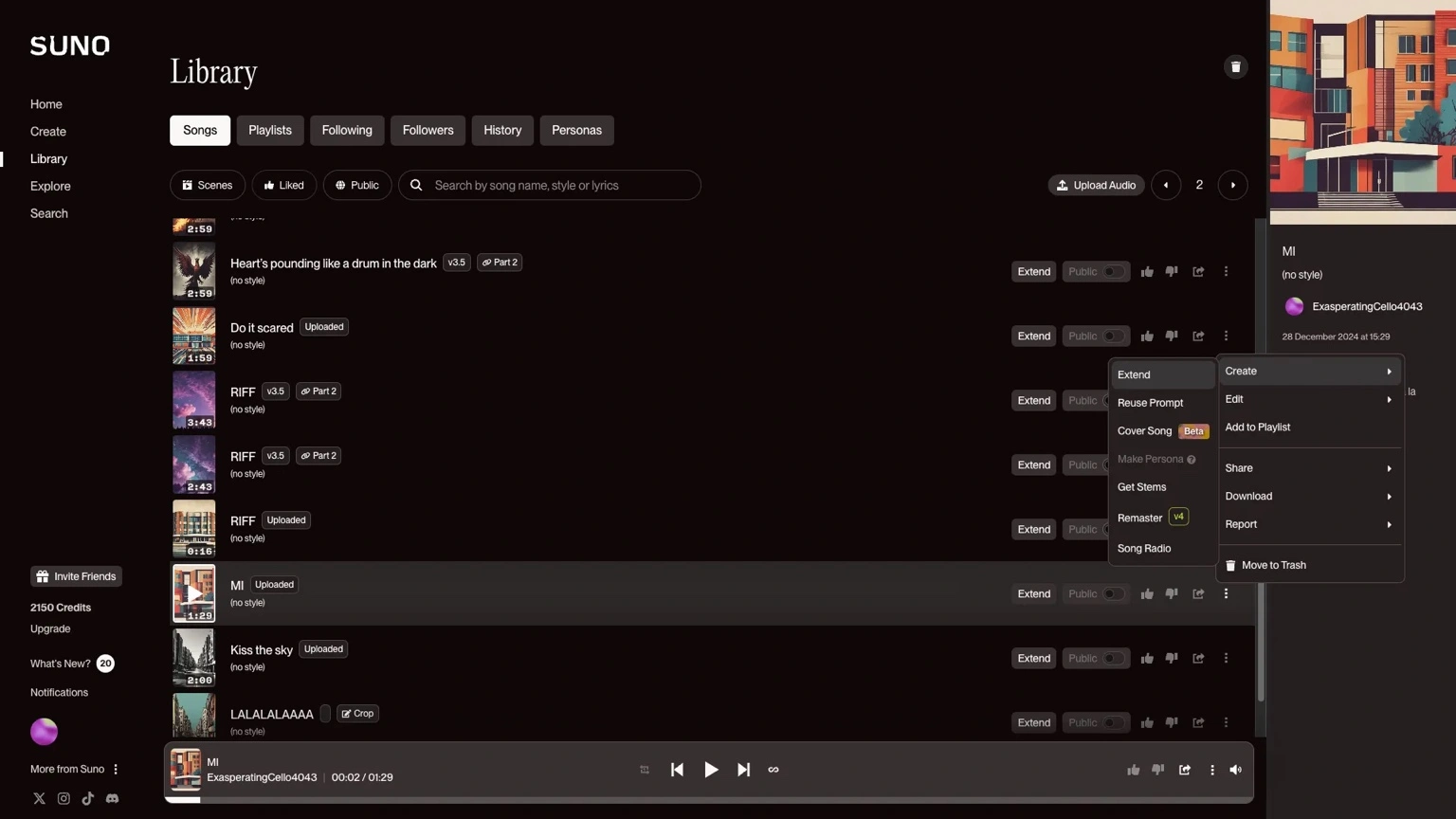 Once you've generated your AI-inspired songs (you can create as many versions as you like, just need more credits), here's what you can do: