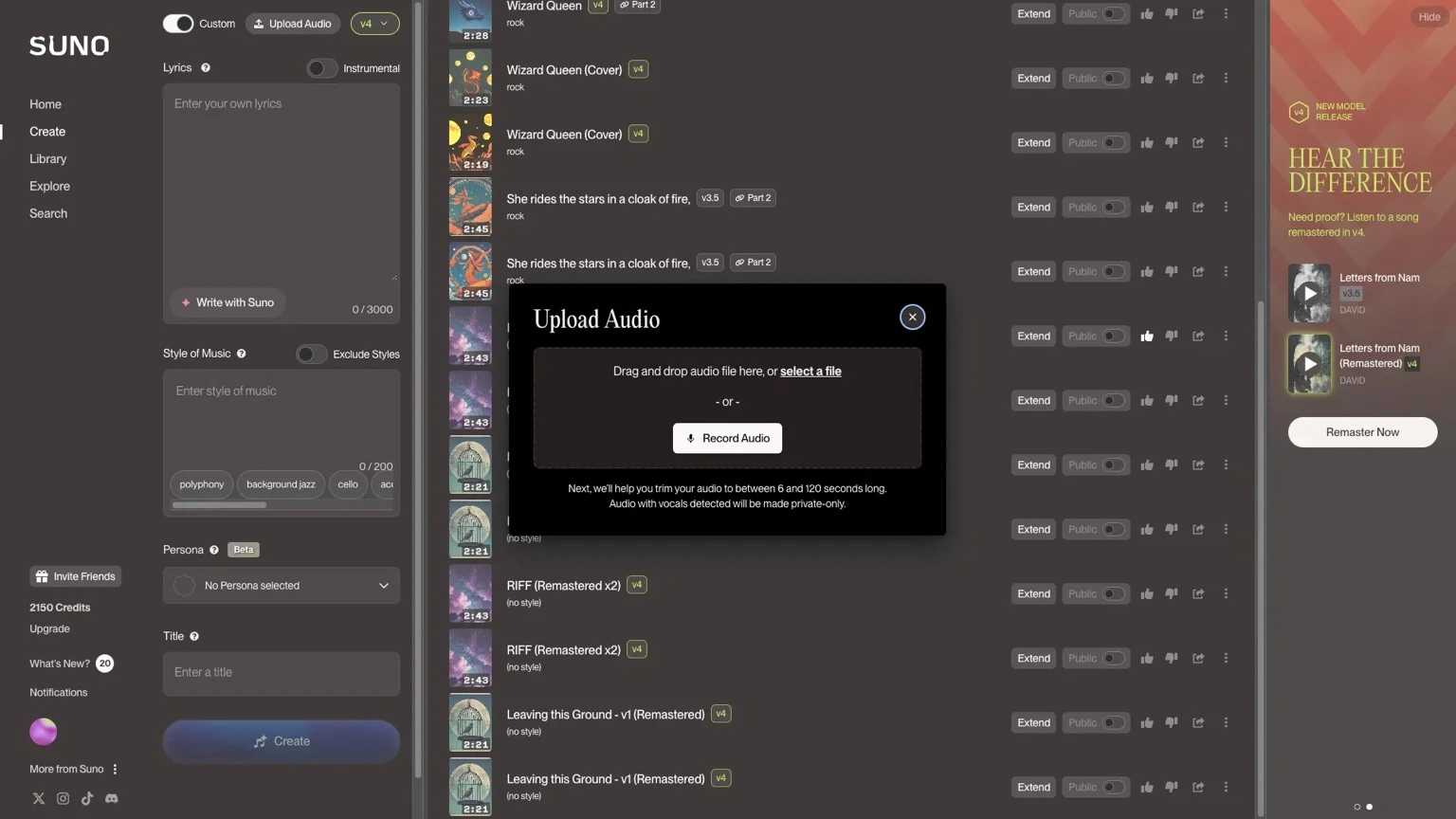 - Need that professional polish? Use Suno's V4 remastering tool. It really shines when it comes to vocals, and you can layer the effects as much as you want. The results are pretty incredible.