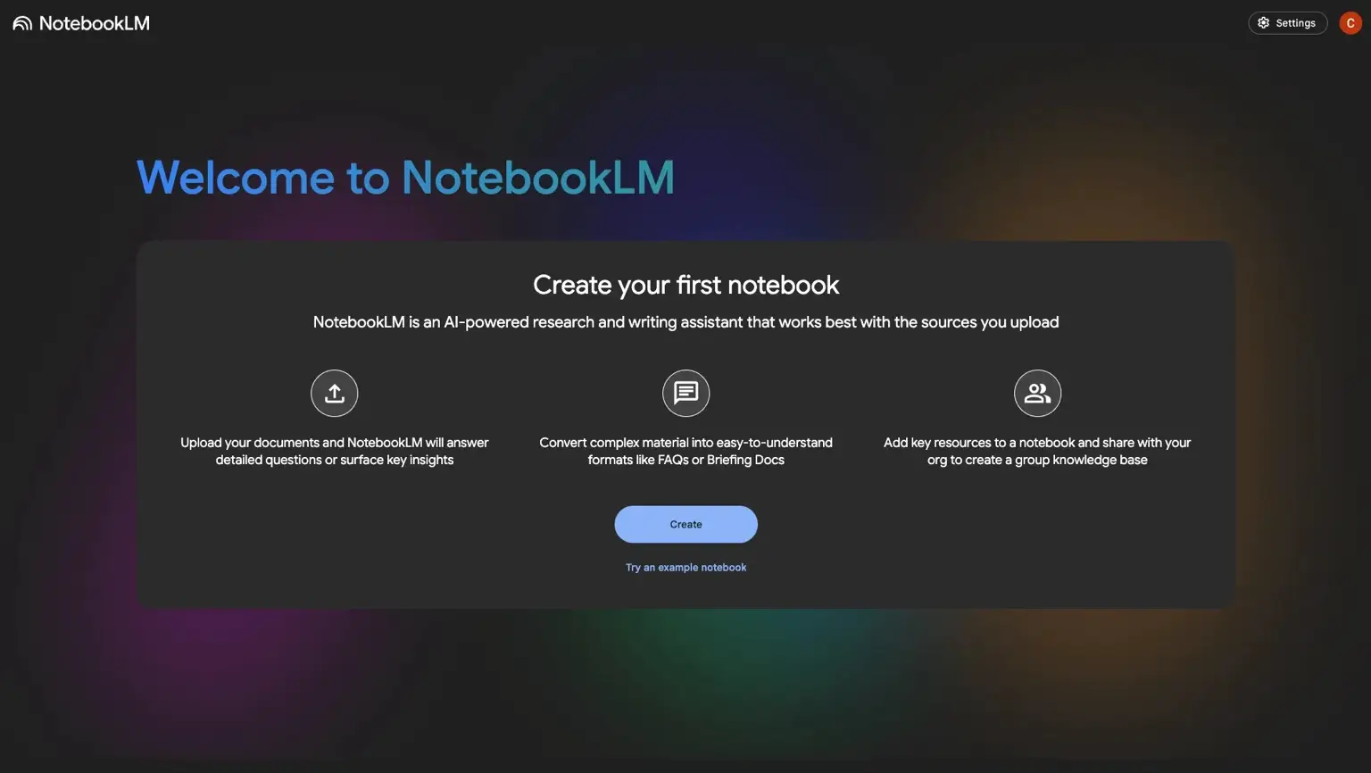 - Go to NotebookLM → Log in → Bookmark the homepage for easy access.