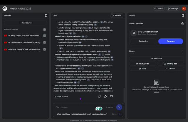 At this stage, you know how to upload content, ask questions, save insights, and generate condensed audio deep dives (that's already a great start!).