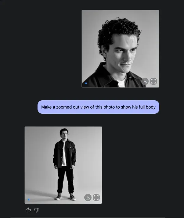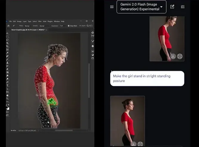 A user changed a person’s posture in an image in 5 seconds using Gemini.