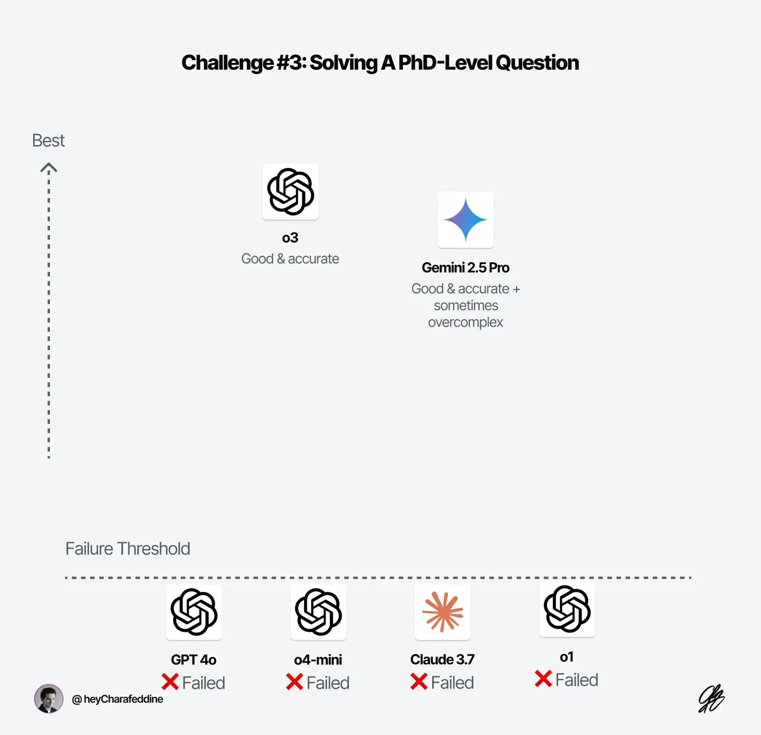 - Second, there are already tons of coding benchmarks out there. I wanted to focus on something different - seeing how these "genius models" handle complex reasoning and truly PhD-level problems.
