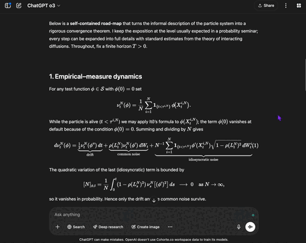 - ✅ o3 (1m 13s): Good. Interesting. It assumes knowledge of very advanced concepts — not surprising at this level. The answer is very well structured.