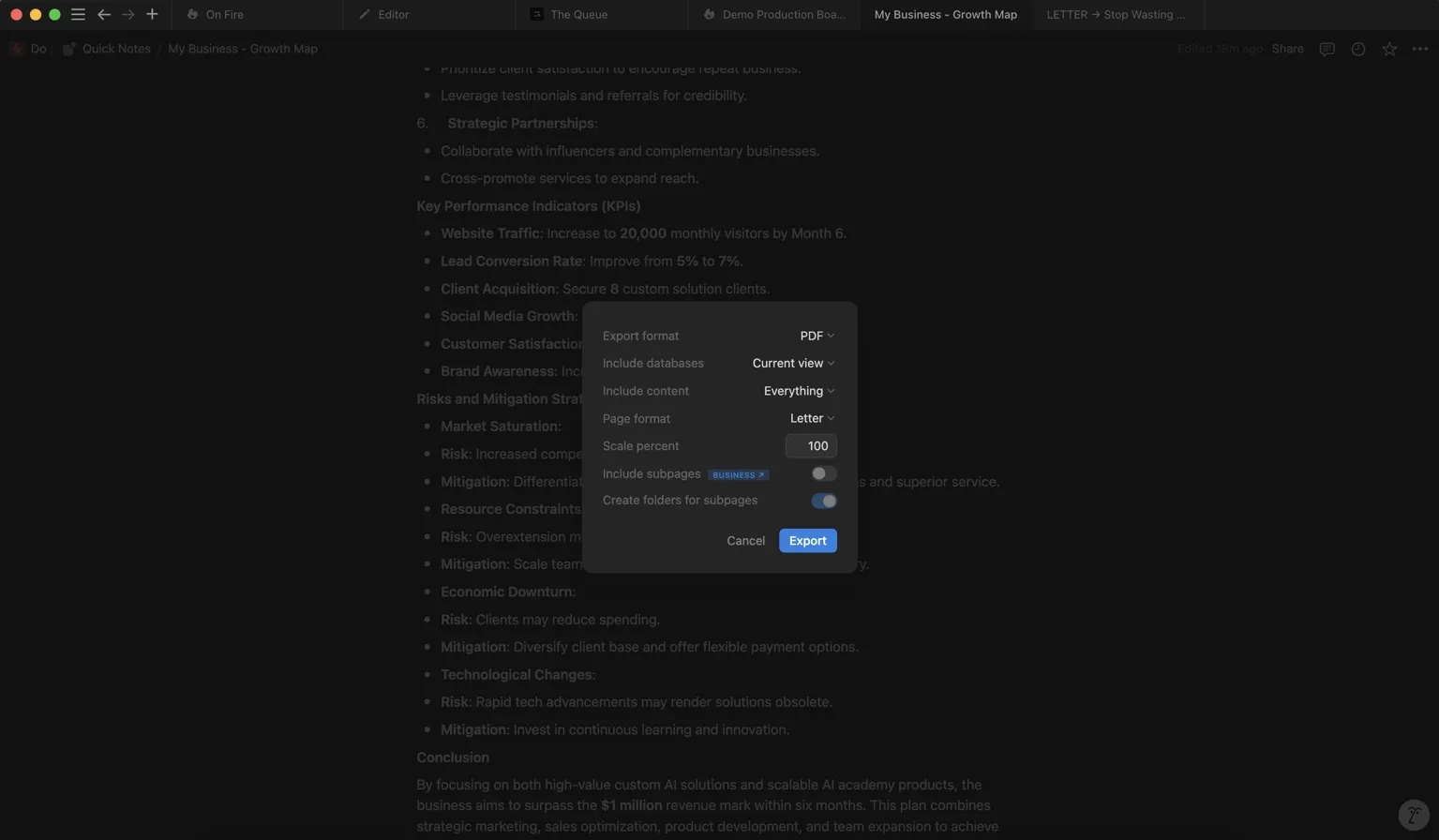 - I exported them to a PDF (this is super simple in Notion—click the three dots in the top right corner of the page and choose “Export as PDF”).