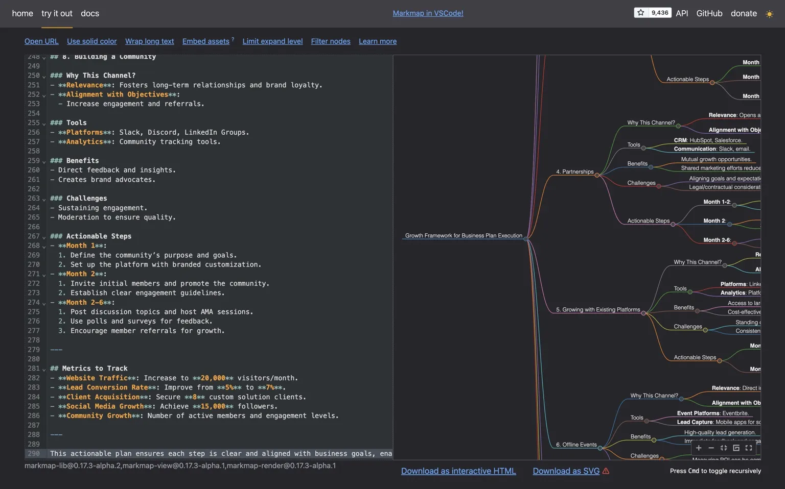 Markmap is a free tool that turns Markdown into interactive, visual mind maps. No design skills required.