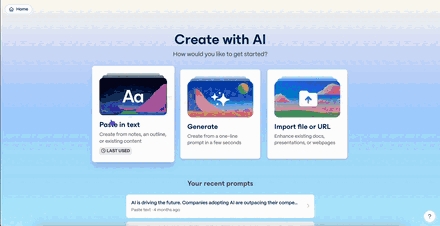 1. Copy outline → Gamma → “Create with AI → Presentation.”