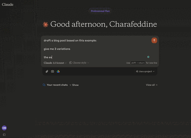 I asked Claude to draft a blog post based on a product design document. Instead of mixing my request and the output together (like ChatGPT does), Claude: