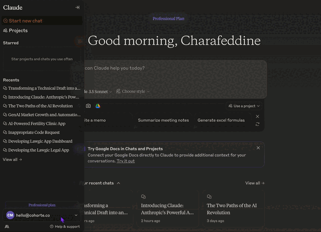- Separate Chats: Within the project, I can create different chat conversations for various needs - like making quotes, tracking progress, answering contract questions, preparing for client meetings, and creating visual content. Think of it as having one organized folder where you keep everything related to your project. Nothing innovative here—it's exactly what it's designed for.