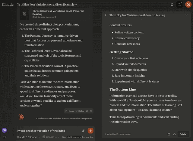 - Allowed me to edit the text in real-time inside the Artifact without losing context.