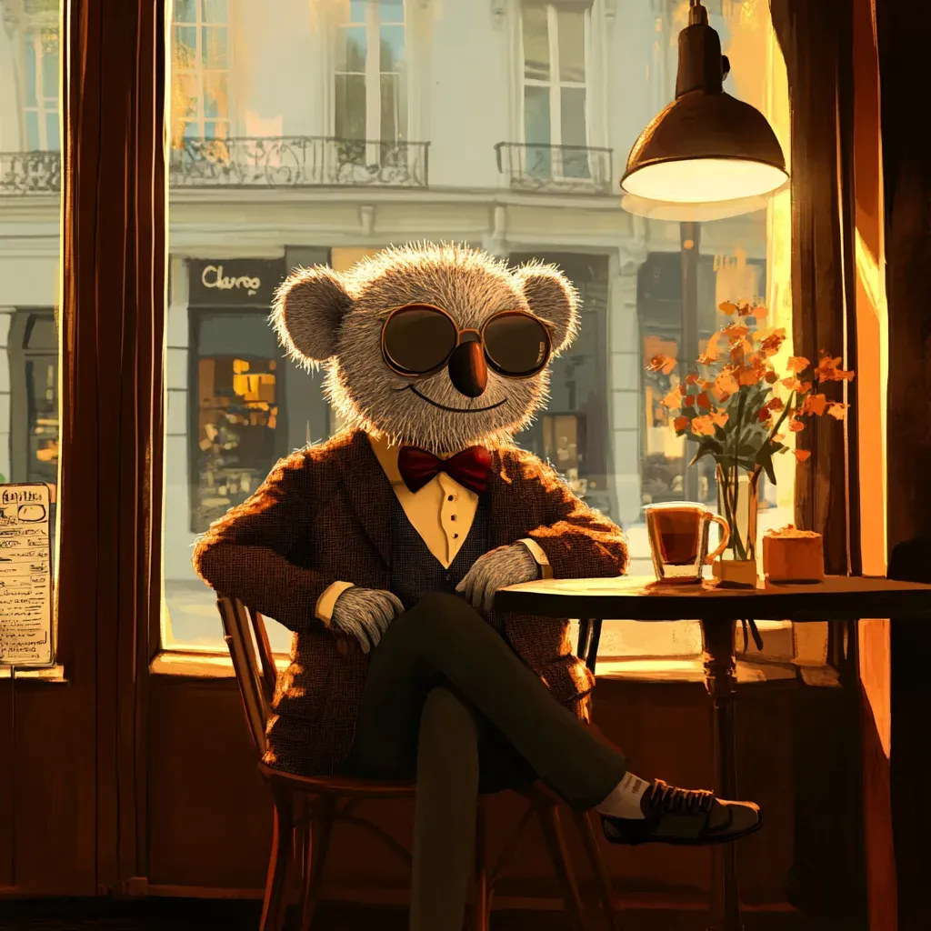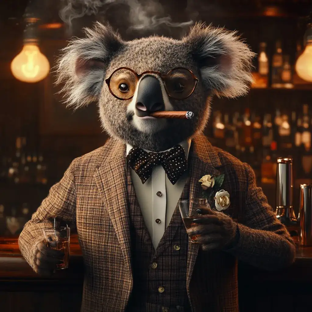 👉 D) Add atmosphere: “A koala dressed like a gentleman, standing outside a busy bar, smoking a cigarette, vintage Polaroid style”