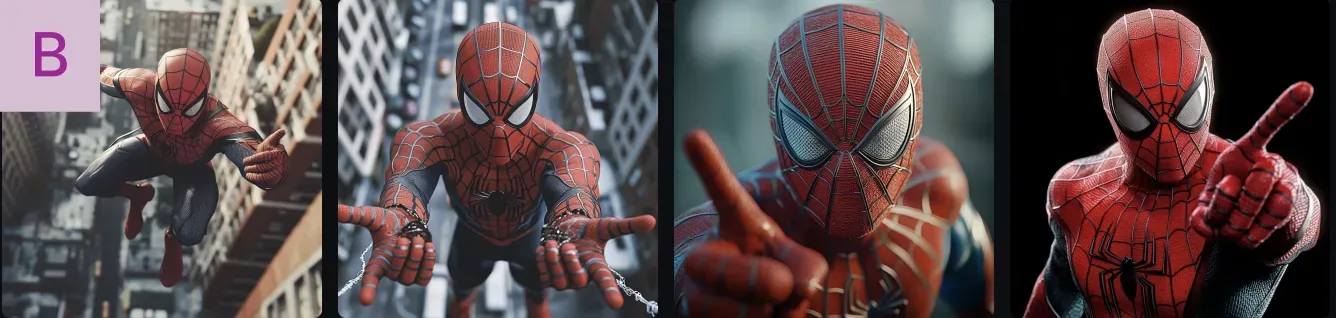 Prompt: “Ultra-realistic hero shot of Spider-Man”