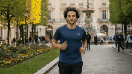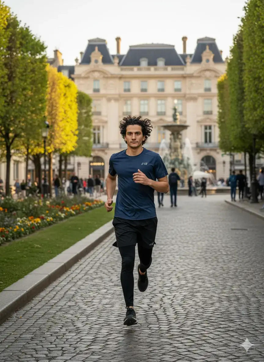 A. I generated an image first: "Generate a high-quality image of that person running in a beautiful city. We must see their full body."