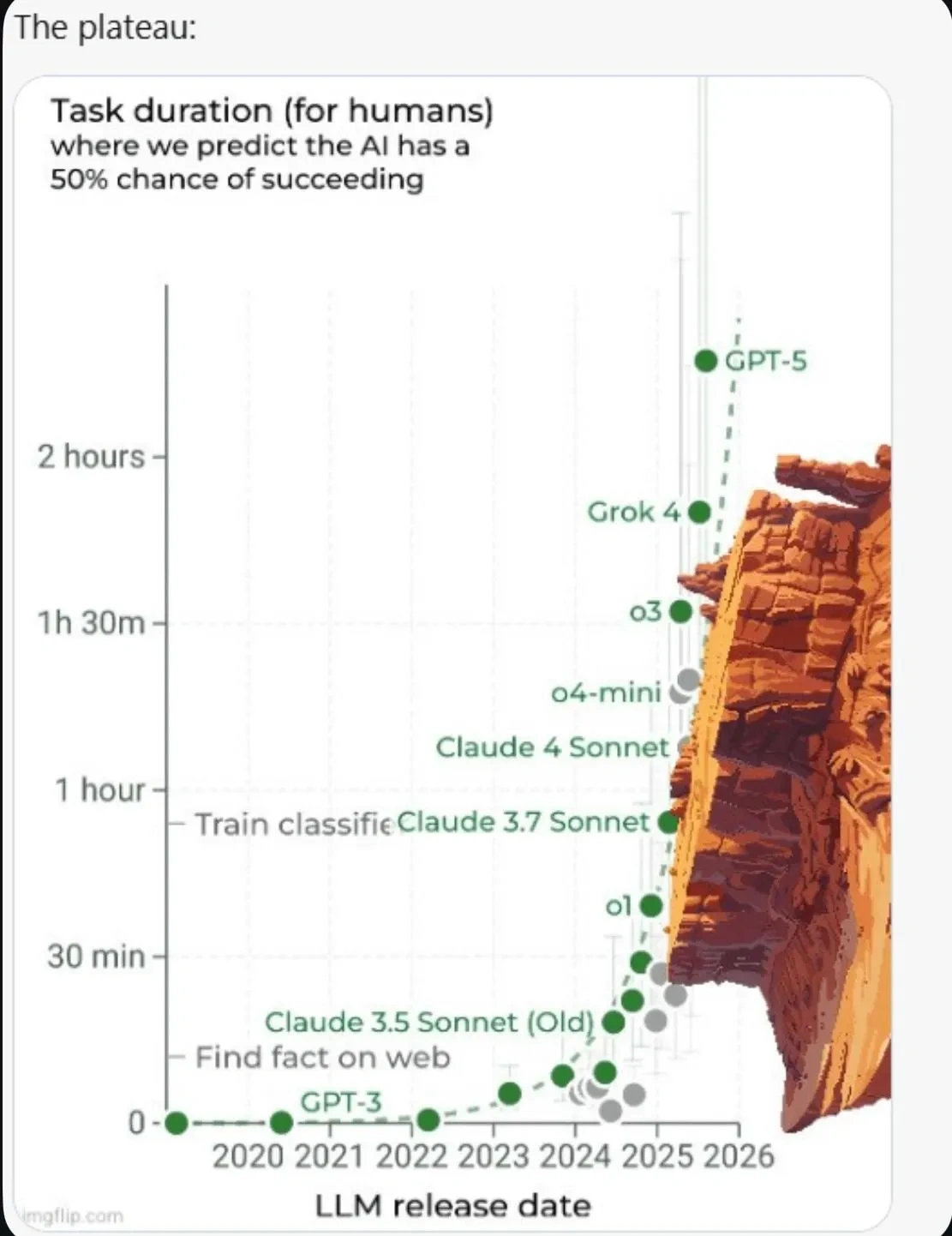 Could future breakthroughs break past today’s ceiling? Sure, that’s possible. But we’re not there yet—and simply following current scaling laws (“just add more compute and out pops intelligence”) won’t get us there.